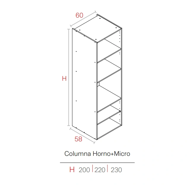 | Composición | Sin Extras, 1 Puerta (derecha), 1 Puerta (derecha) + Cajones, 1 Puerta (izquierda), 1 Puerta (izquierda) + Cajones, Abatible + Cajones |