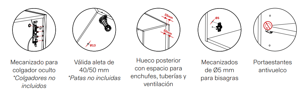 | Acabado | Anniversary, Arena Zenit, Blanco, Nocce, Roble Murati, Sin Acabado |